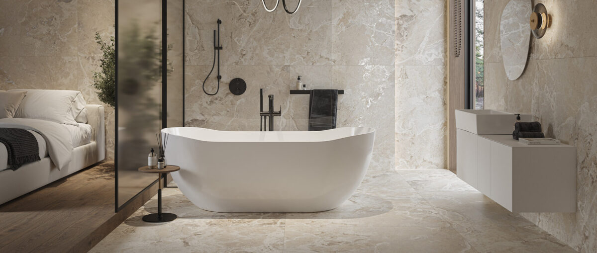 True Touch® łączy cyfrową precyzję z naturalnymi materiałami, dzięki czemu powierzchnie płytek zyskują niezwykłą głębię, autentyczną fakturę oraz wielowymiarowy efekt, który nie tylko przyciąga wzrok, ale naprawdę chce się go dotknąć. Cztery premierowe kolekcje: ARCADIA STONE, VELLUTO, STIGE i VILROY – pozwalają doświadczyć tej technologii wszystkimi zmysłami: od gry światła, przez strukturę, aż po emocje związane z dotykiem i detalem.