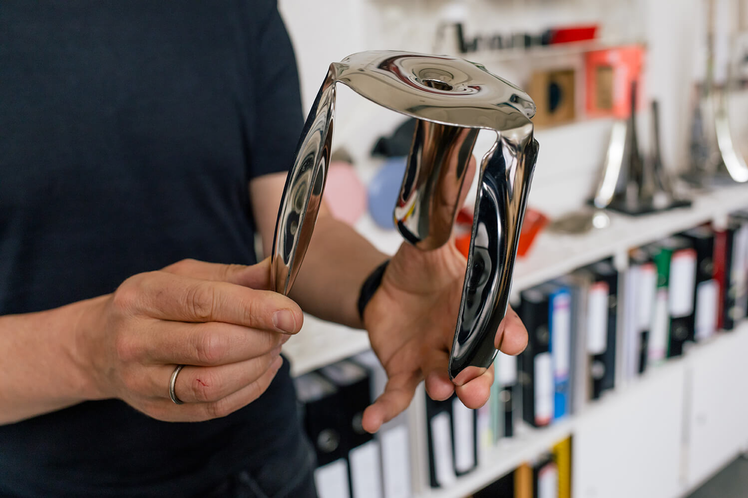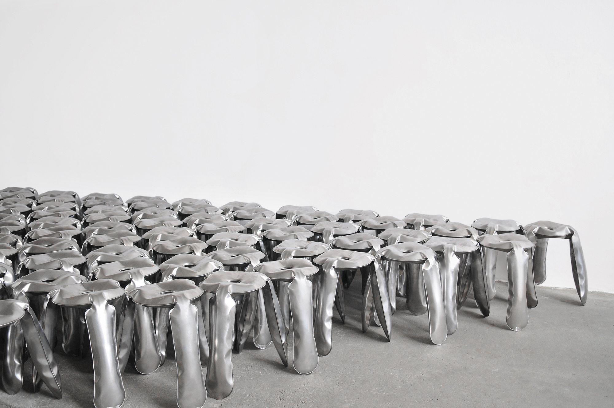 Tworzymy obiekty pożądania z metalu. Deformujemy go z płaskich membran do trójwymiarowych form. Projektujemy procesowo, pozwalając naszej autorskiej technologii FiDU formować unikatowe krawędziowe nieregularności. Rezultatem procesu są puste w środku, lekkie i niezwykle wytrzymałe obiekty. Nadajemy im użytkowy wymiar i pozwalamy im być sztuką – manifestem naszych fascynacji w formie monomateriałowych, ultralekkich obiektów-rzeźb, obiektów dla generacji.