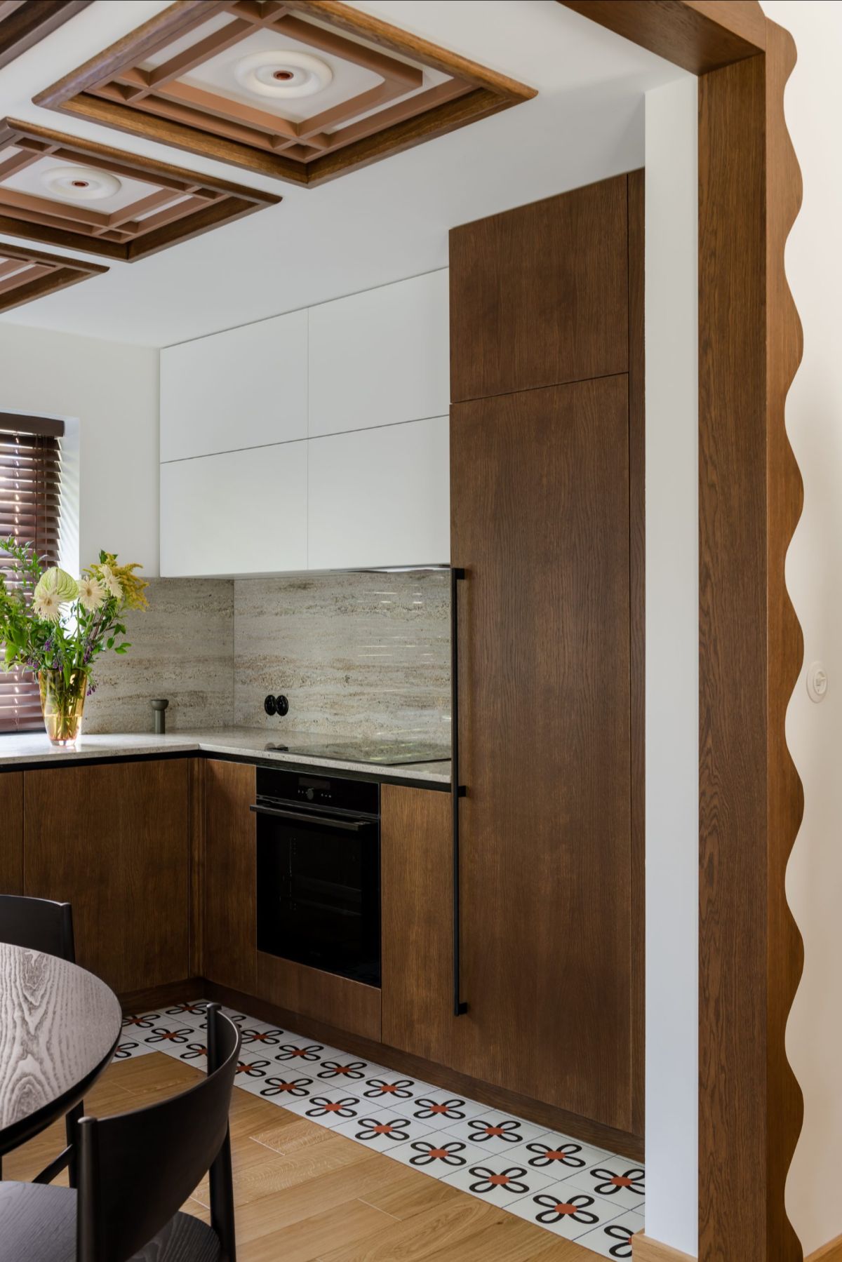 - brązowa kuchnia: brązowe meble z naturalnego drewna i jasne ściany (beżowe ściany lub kremowy) to funkcjonalne i eleganckie rozwiązanie.