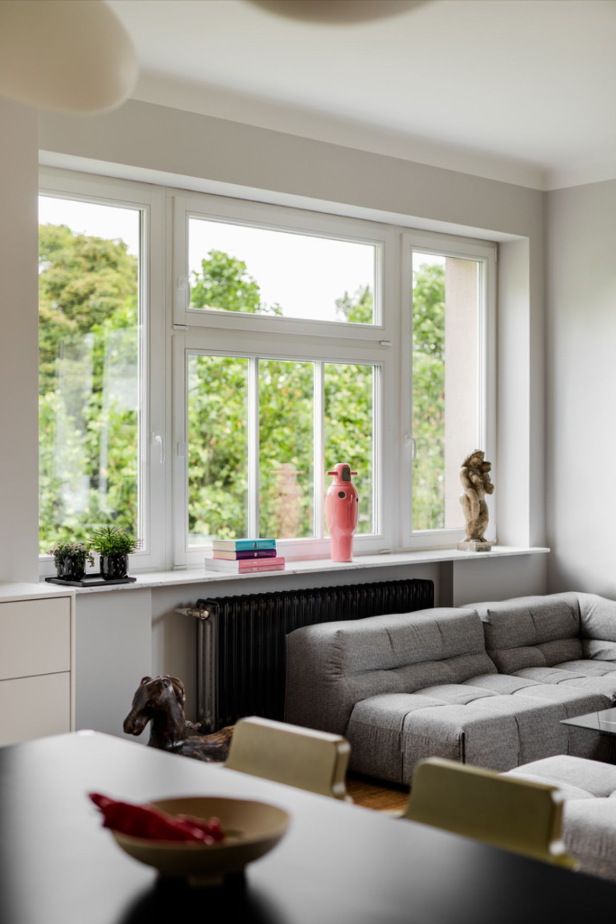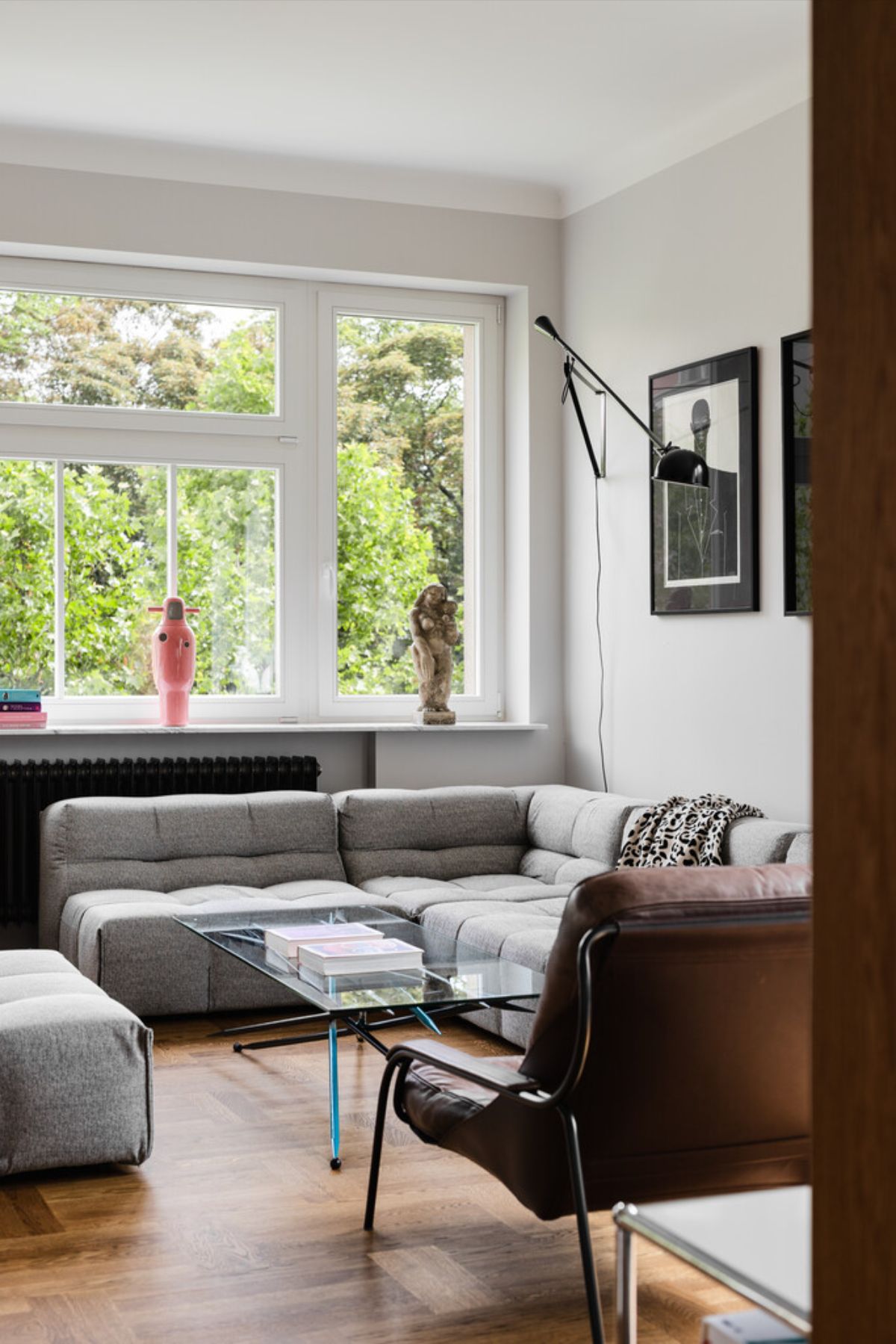 Mokotowska kamienica z lat 30., zaprojektowana przez duet J. Gelbard i R. Sigalin, od początku była dla architektek ważnym punktem odniesienia. – Historia budynku, panująca w nim atmosfera i wszechobecne detale architektoniczne stały się dla nas oczywistą inspiracją – przyznaje Antonina Sadurska z pracowni FUGA Architektura Wnętrz. – Chciałyśmy, by mieszkanie pozostawało w nieustannym dialogu z duchem miejsca, a jednocześnie odpowiadało na współczesne potrzeby inwestorki – kobiety aktywnej, towarzyskiej, spełnionej, a zarazem oddanej mamy i babci – wspomina. Szybko okazało się, że aby osiągnąć cel, niezbędna będzie całkowita zmiana pierwotnego układu funkcjonalnego. – Dotychczasowy rozkład nie sprzyjał aktywnemu stylowi życia klientki, skutecznie ukrywając także potencjał aranżacyjny wnętrza. Dlatego zgodnie zdecydowałyśmy o otwarciu przestrzeni, tworząc oryginalny układ amfiladowy, w którym można swobodnie krążyć między pomieszczeniami – opowiada Katarzyna Burak, współautorka projektu. Efekt? Mieszkanie stało się jasne, funkcjonalne i zyskało wyraźny punkt centralny, na którym zależało inwestorce – strefę wspólną, z przenikającą się kuchnią jadalnią i salonem.