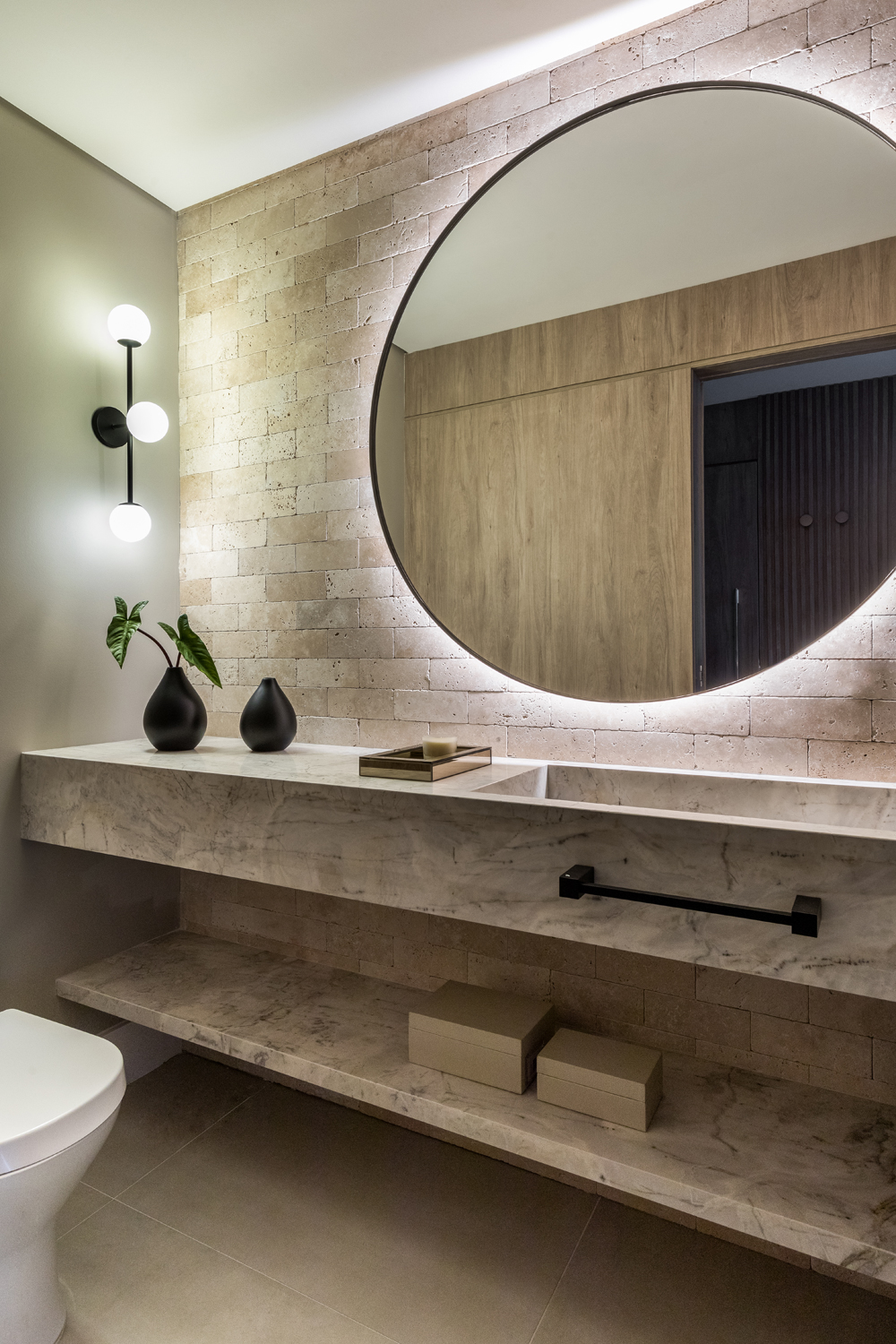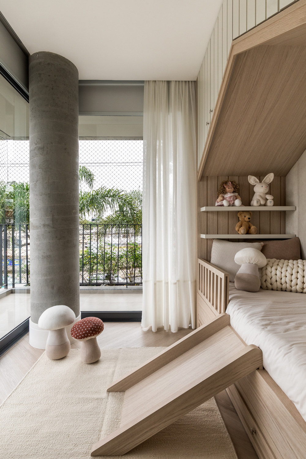 Zaprojektowany przez architektkę Caroline Andrusko 450-metrowy apartament z ogrodem, zlokalizowany w Kurytybie w południowej Brazylii, powstał z myślą o rodzinie – parze lekarzy i ich dzieciach. Kiedy po raz pierwszy zgłosili się do pracowni, ich starsza córka miała dwa lata, a w trakcie procesu projektowania i budowy dowiedzieli się, że spodziewają się drugiego dziecka. Młodzi ludzi, prowadzący intensywny tryb życia, poszukiwali domu, który zapewniłby poczucie ciepła oraz miejsca… w którym wszystko do siebie pasuje!