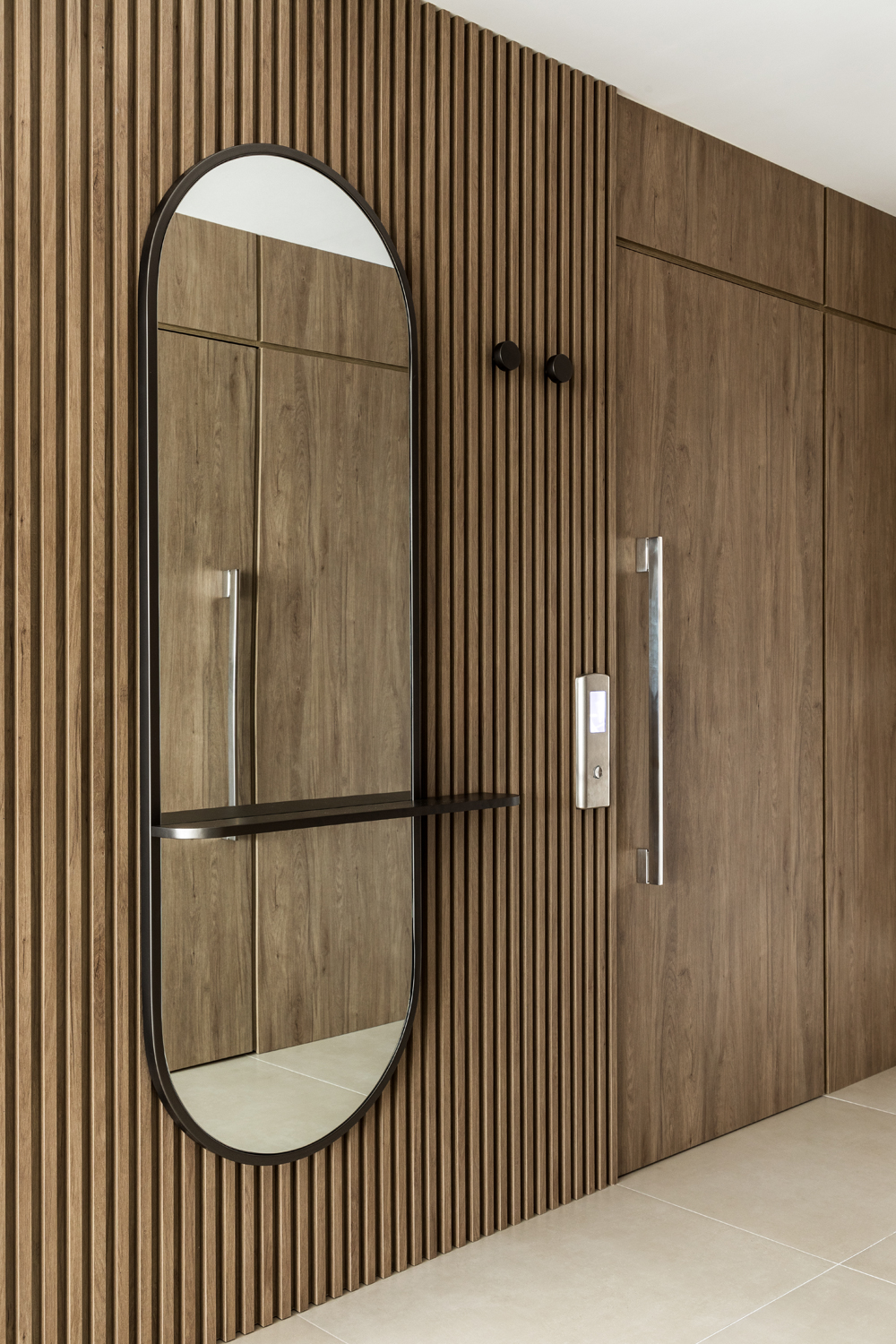 Wybór apartamentu z ogrodem okazał się kluczowy, ponieważ daje on poczucie mieszkania w domu. Przestronna strefa zewnętrzna – z ogrodem, przestrzenią gourmet i częścią rekreacyjną – tworzy atmosferę odbiegającą od typowego miejskiego mieszkania. To wrażenie wzmacnia dodatkowo podwójna wysokość sufitu w salonie, która podnosi jakość doświadczenia przestrzeni w strefach dziennych.