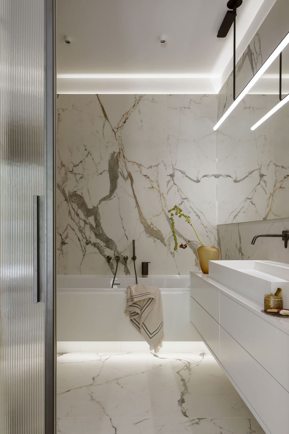 Projekt HOLA Design nie epatuje spektakularnością. Jego siłą jest konsekwencja, wyczucie skali i umiejętność budowania atmosfery poprzez materiały i wzornictwo najwyższej klasy. Meble i oświetlenie renomowanych włoskich marek tworzą w efekcie spójną, wyrafinowaną całość. To wnętrze, które nie narzuca się użytkownikowi. Raczej towarzyszy, oferując harmonię i ponadczasową estetykę, która z biegiem lat nabierze jeszcze większej głębi.