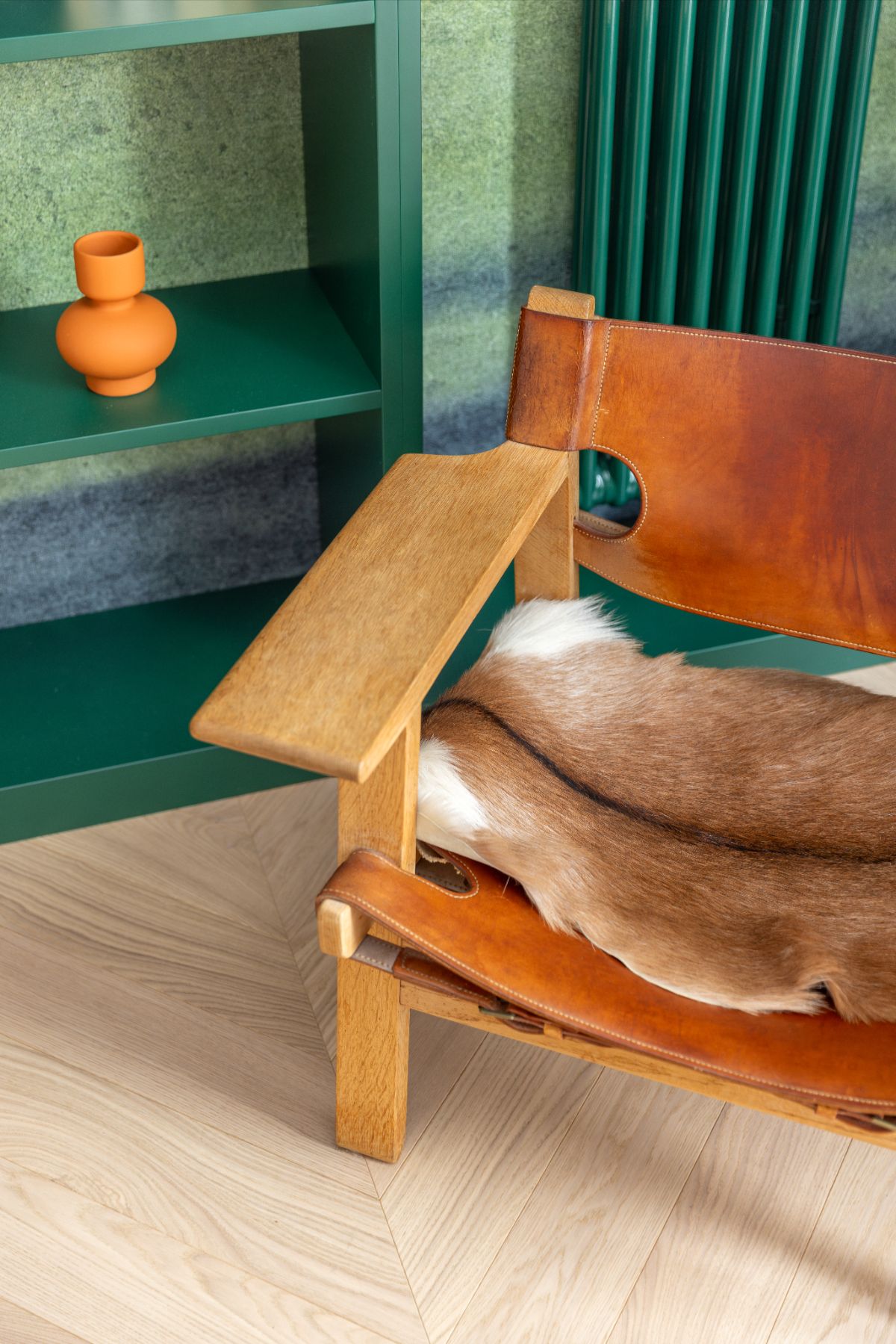 Podczas pracy nad nowym projektem nie sposób było uniknąć odniesień do poprzedniego mieszkania. Joanna i Peter pragnęli odtworzyć wiele z rozwiązań, które sprawdziły się w ich poprzednim mieszkaniu, również zaprojektowanym przez jlw studio: parkiet w jodełkę francuską, płytki, baterie w odcieniu stali szczotkowanej czy wybrane odcienie szarości. Do nowej przestrzeni przenieśli również ulubione duńskie meble – oryginalne ikony designu z historią, które towarzyszą im od lat.