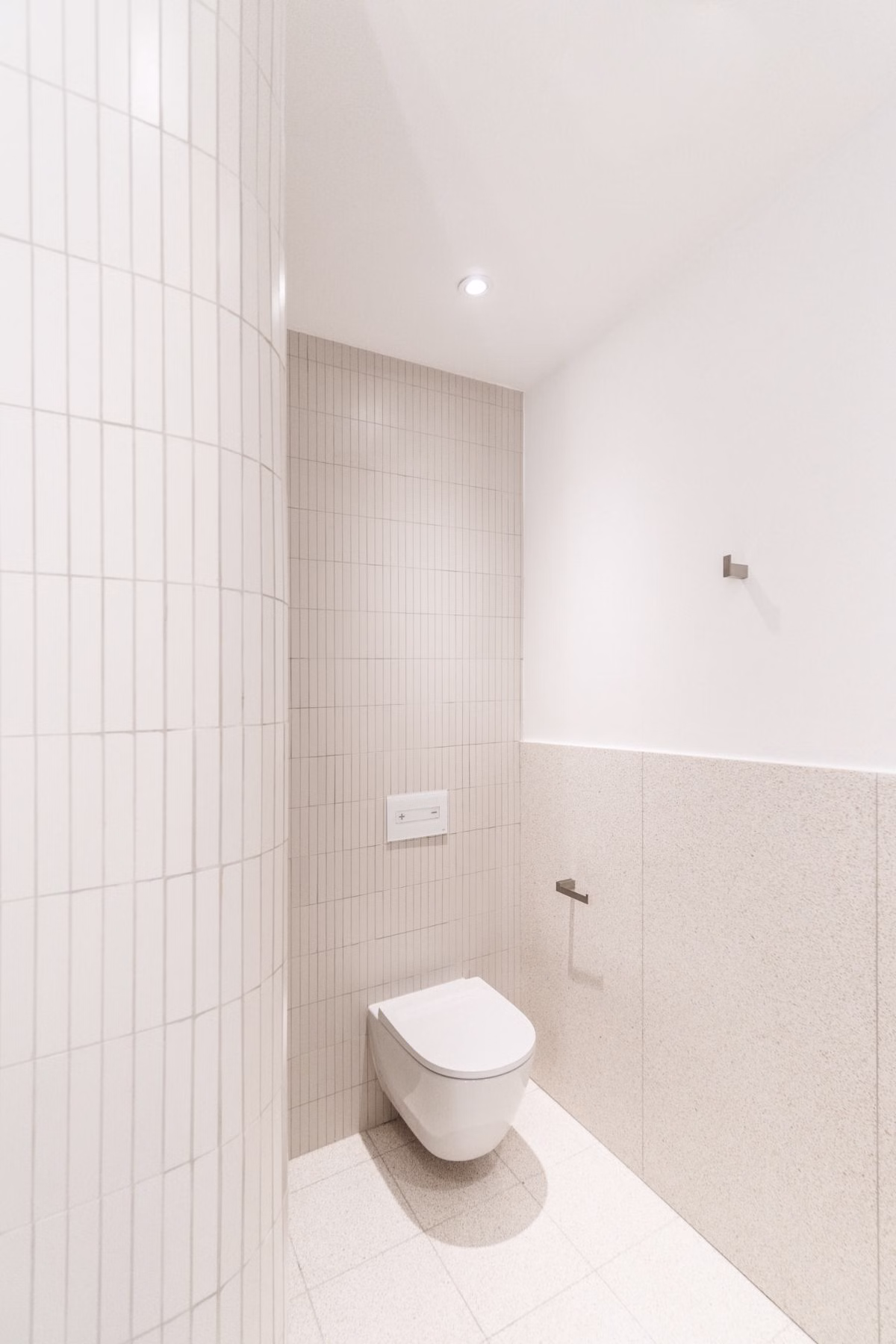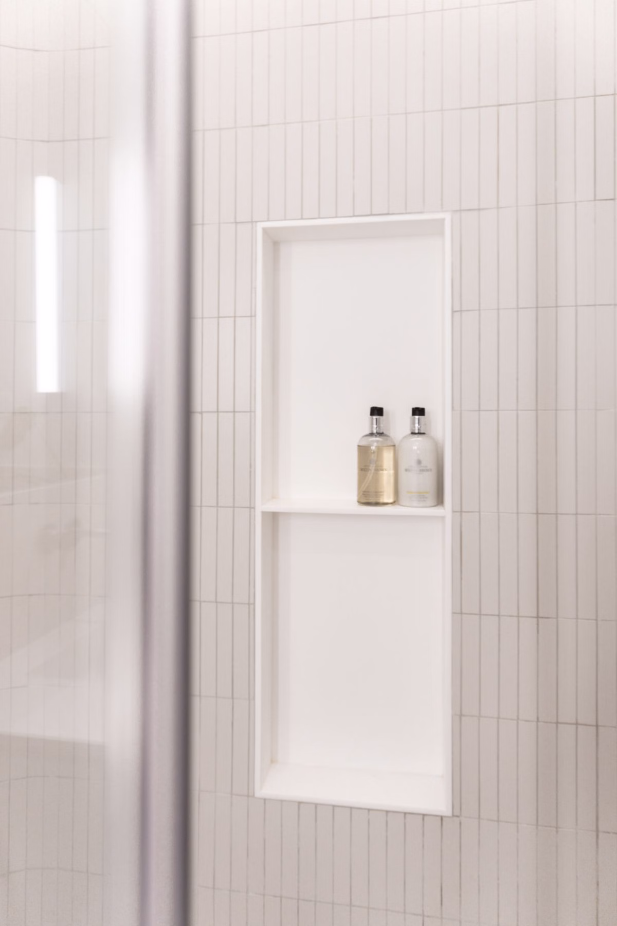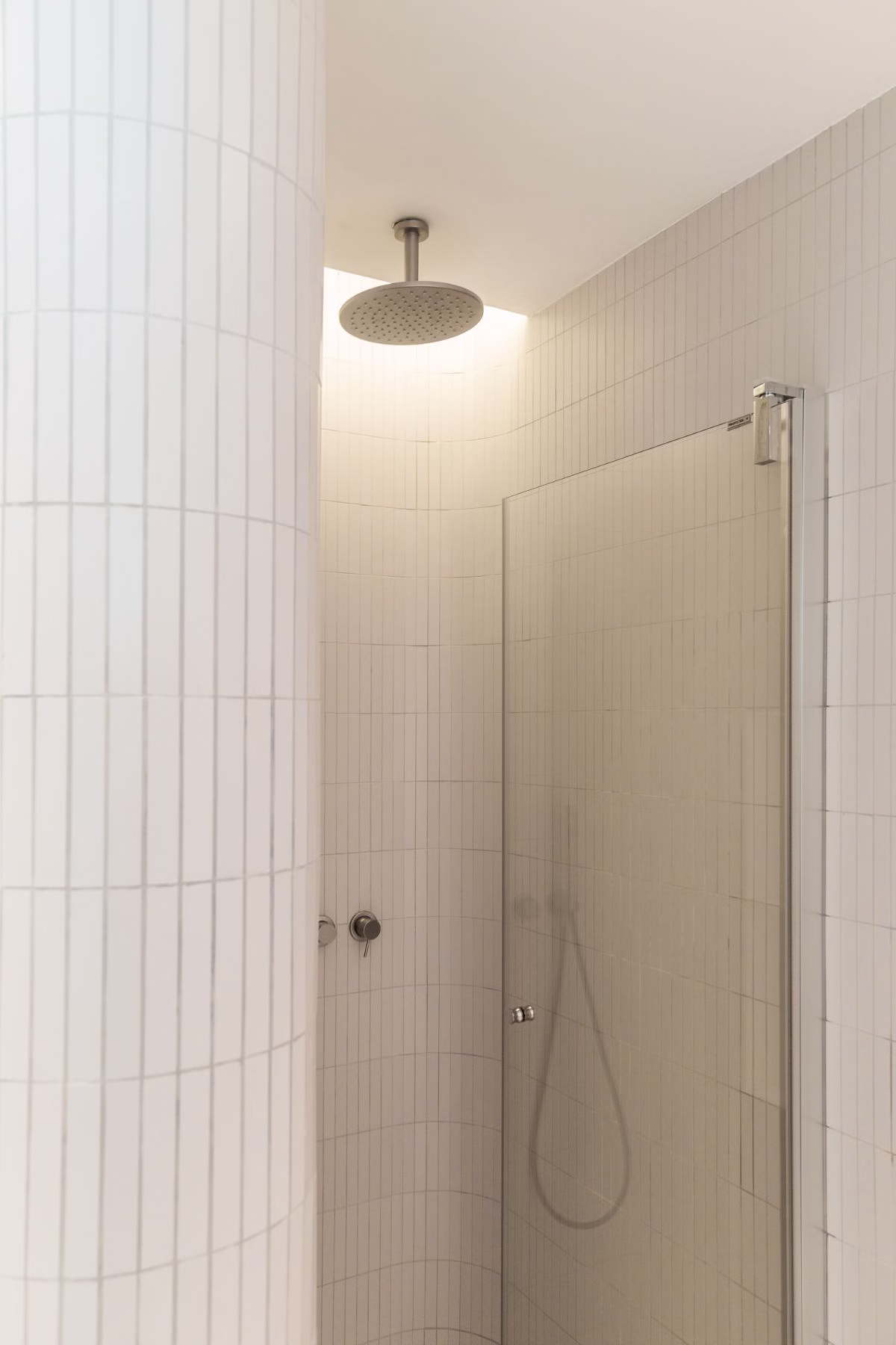 Głównym celem projektu łazienek było stworzenie komfortowej przestrzeni. Efekt ten został osiągnięty dzięki zastosowaniu jasnych i delikatnych kolorów, dopełnionych zaokrąglonymi formami. Zaokrąglenia te zostały dodatkowo wydobyte poprzez zastosowanie światła pośredniego oraz dużych wbudowanych tafli luster, które rozświetliły wnętrze.