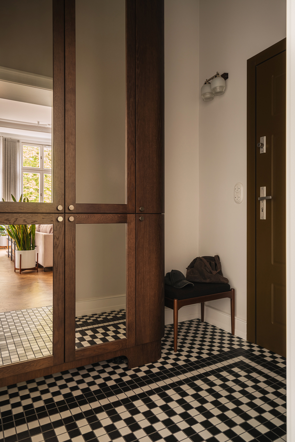 – Historia kamienicy była dla mnie fundamentem. Chciałam, by wnętrze apartamentu świadomie czerpało z przeszłości. Zanim więc powstały pierwsze szkice projektu, sięgnęłam po źródła: książki, archiwalia i opisy kompleksu Johow-Gelände, do którego należy budynek. Wielokrotnie spacerowałam ulicą Matejki, zaglądałam do wnętrz klatek schodowych i chłonęłam ducha epoki. Wszystko po to, by jak najlepiej odpowiedzieć na potrzeby inwestora – wspomina z uśmiechem architektka.