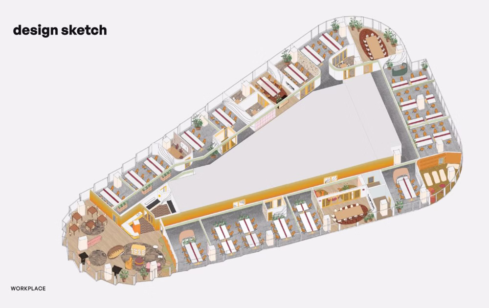 Centralnym punktem biura jest Lipton Bar, zaprojektowany jako symboliczne „słońce” przestrzeni. To wokół niego koncentruje się życie społeczne biura, a od niego promieniują kolory, nastroje i aktywności. Podobnie jak w procesie infuzji, wnętrze zostało zaprojektowane jako sekwencja stref o różnym poziomie energii – od dynamicznych i ekspresyjnych po spokojniejsze, sprzyjające koncentracji.