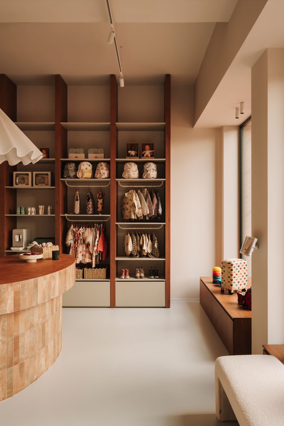 Choć większość sprzedaży w mini bébé odbywa się online, właścicielka postawiła na stworzenie showroomu, w którym klienci mogą poczuć jakość, dotknąć produktów i doświadczyć marki w wyjątkowej przestrzeni. Projekt wnętrza przygotowany przez CUDO przede wszystkim wspiera długoterminową strategię biznesową inwestora.