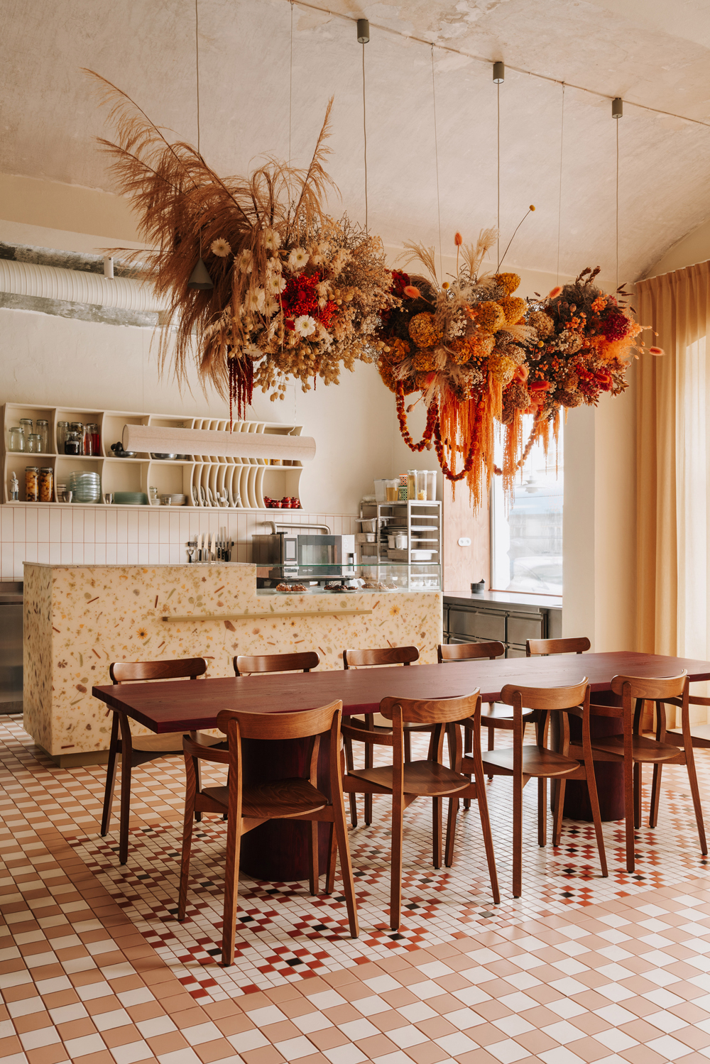 Układ lokalu sprzyja wspólnocie – od otwartej strefy wejściowej po kameralne zakątki zachęcające do pozostania na dłużej. Przez duże witryny widać codzienny rytm pracy i świeżo wypiekane bułeczki, a dopracowane detale i ciepłe światło sprawiają, że Dala staje się miejscem, w którym naprawdę można zwolnić i skupić się na chwili.
