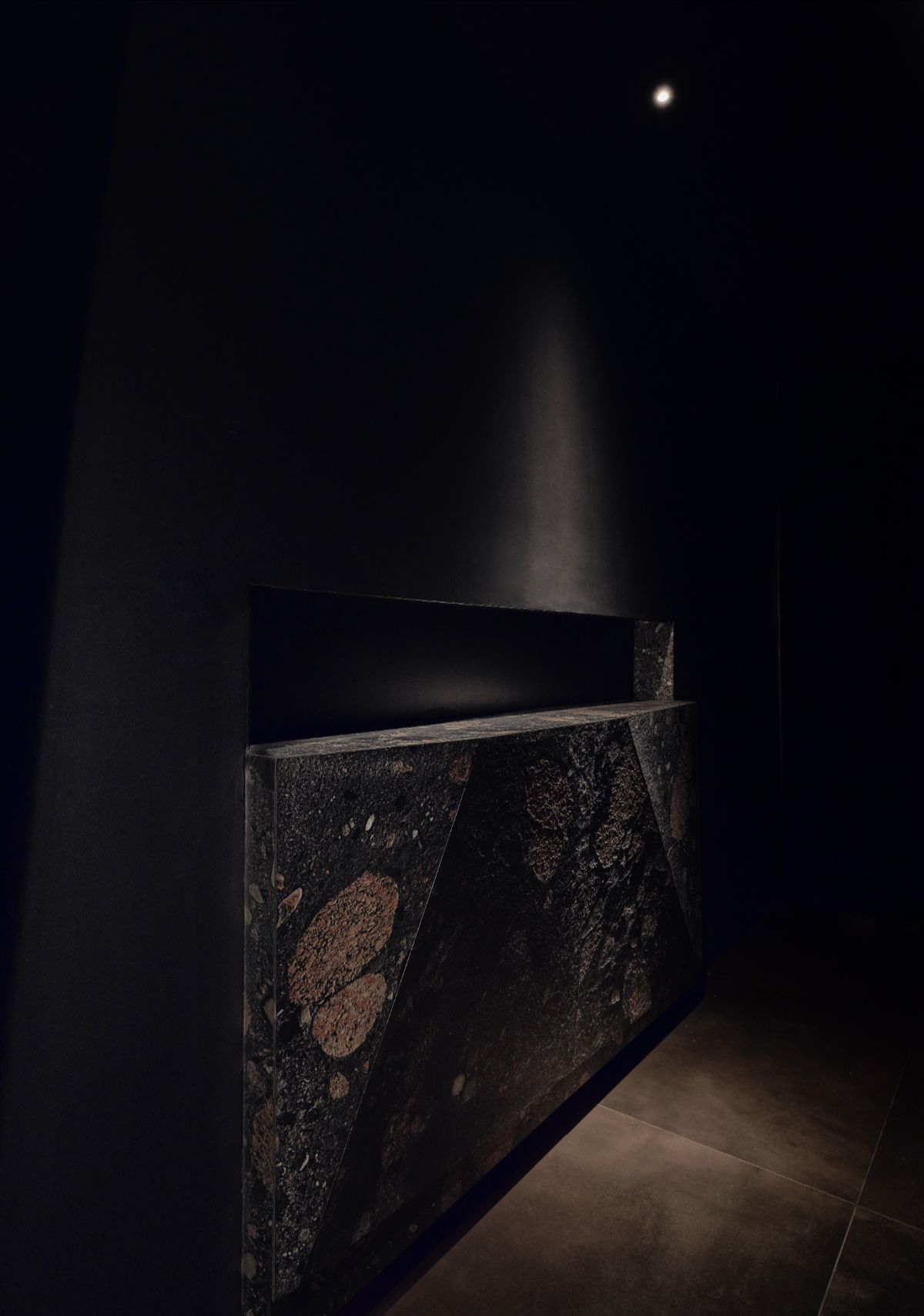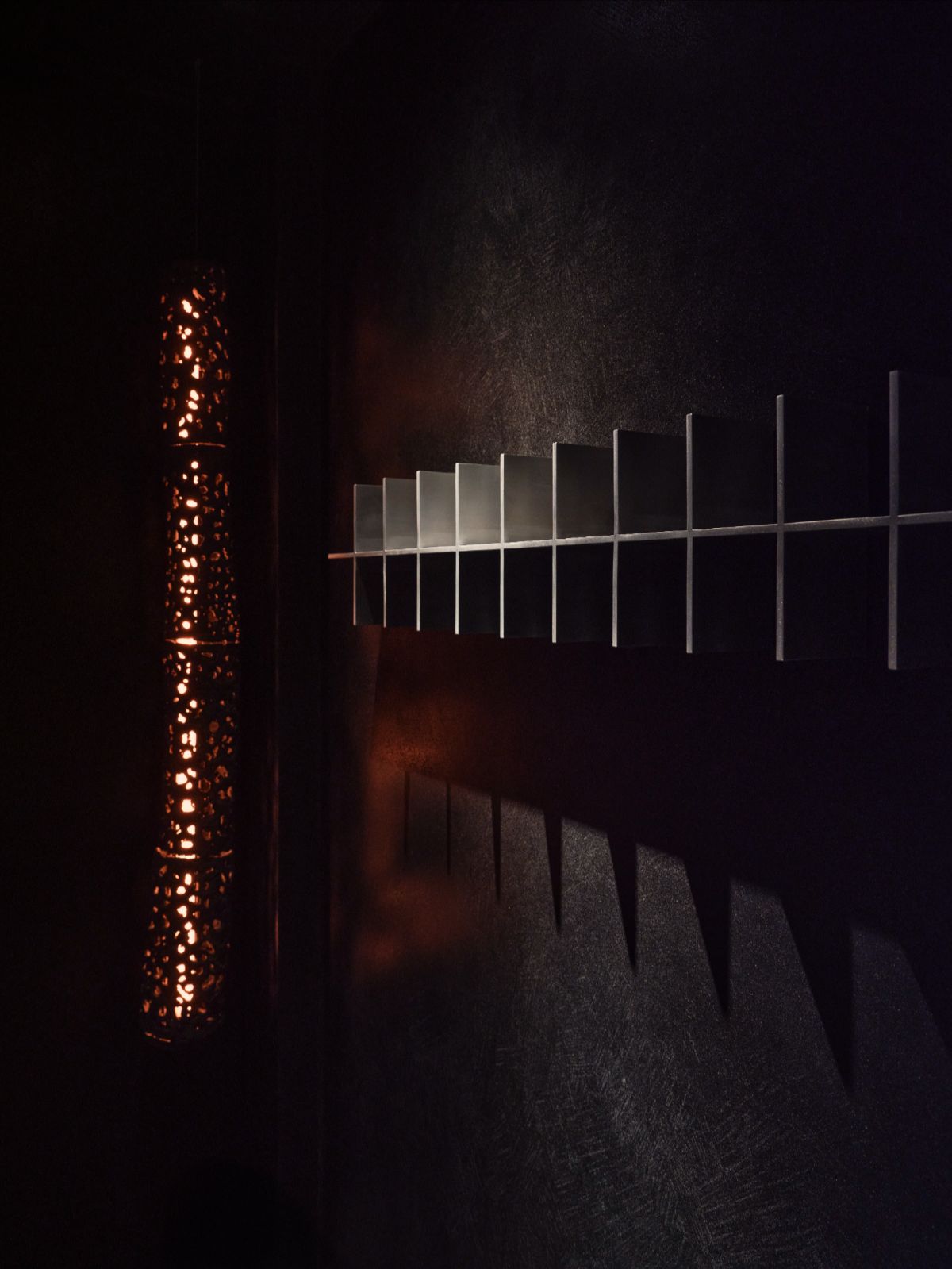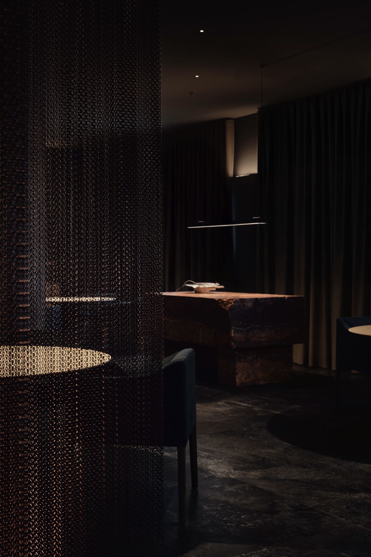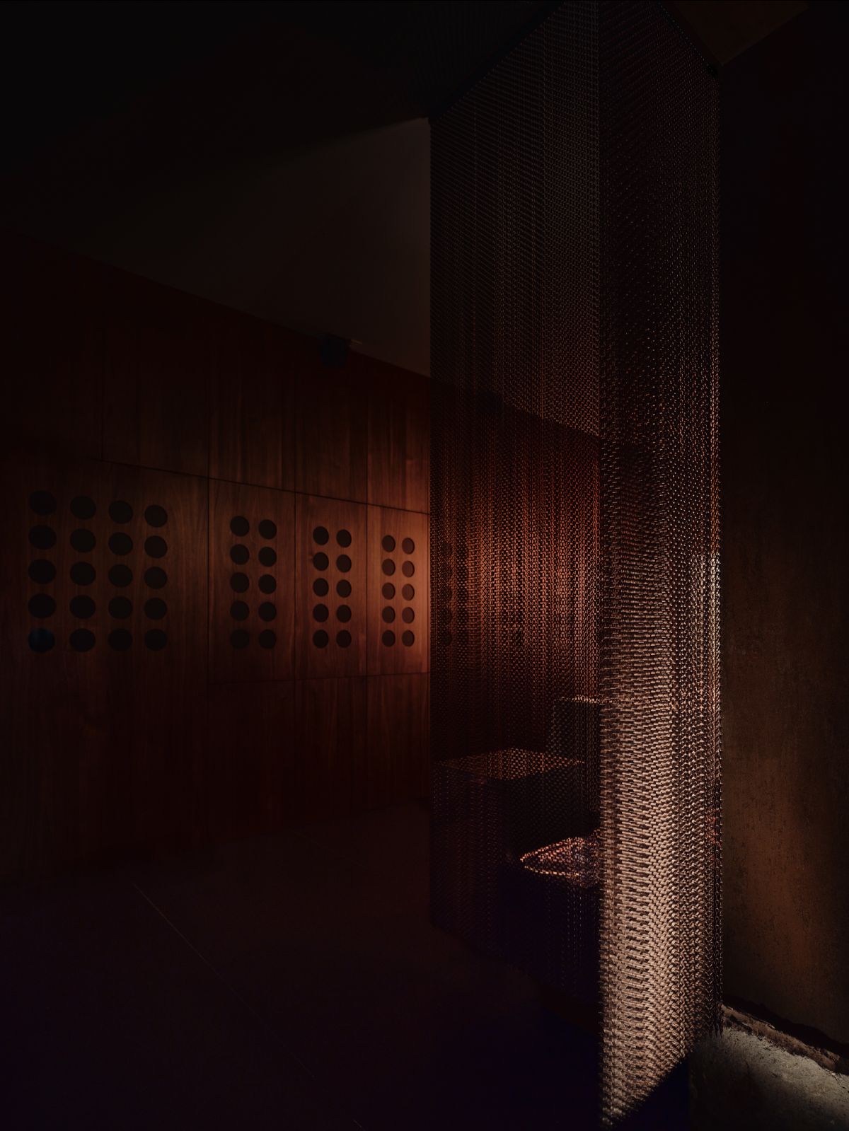 Oświetlenie subtelnie imituje przepływ lawy — delikatnie podkreśla reliefy ścian, a jednocześnie prowadzi gości niczym świetlista ścieżka przez kolejne etapy „wulkanicznej” podróży. Ambientowe dźwięki przypominają echo dochodzące z głębi ziemi: miękki szept, który towarzyszy całej kompozycji przestrzeni.