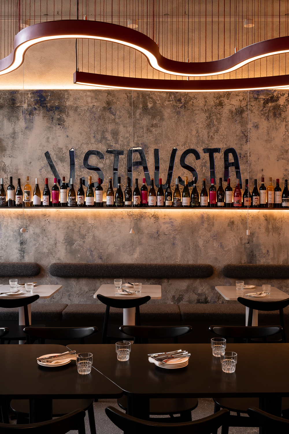 W „Usta Usta” kluczową rolę gra oświetlenie. Zostało zaprojektowane z niezwykłą starannością, by budować intymny nastrój przy stolikach i podkreślać estetykę serwowanych dań. Wizualną dominantą, która przyciąga wzrok i zapada w pamięć, jest specjalnie zaprojektowana lampa w kształcie ust. To unikatowy element, który stanowi świetlny podpis lokalu i idealnie dopełnia jego swobodny, miejski charakter.