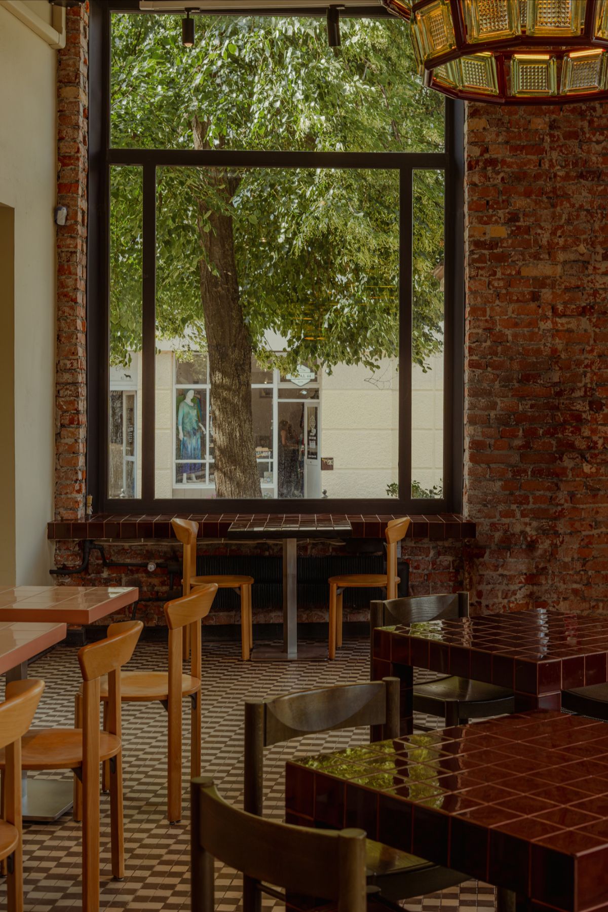 Lokal wcześniej mieścił sklep obuwniczy. Oczyszczenie wnętrza do gołej cegły okazało się strzałem w dziesiątkę. Pod nieestetycznymi płytkami z lat 90. odkryto przepiękną, przedwojenną biało-czarną mozaikę. Ceglane ściany zostały jedynie zaimpregnowane, by podkreślić ich kolor. Zaplecze i łazienki wydzielono przy użyciu surowych płyt g-k, które zalakierowano, aby były odporne na zabrudzenia.
