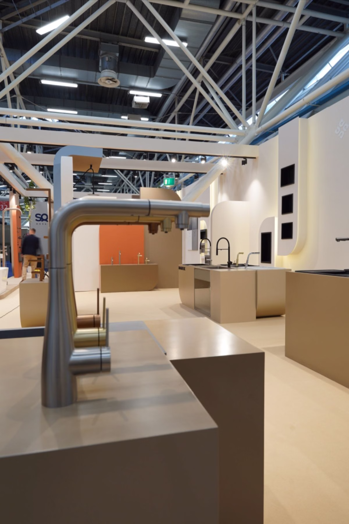 Przestrzeń marek w hali 32 wyróżniała się spójną narracją i konsekwentnie zaprojektowaną ekspozycją. – Jednym z mocnych akcentów tegorocznych targów było stoisko polskich marek Deante i Deante Design Studio. Duży napis „Made in Poland” z dumą wskazywał kraj pochodzenia – co w tej branży wcale nie jest tak oczywiste. Przestrzeń ekspozycyjna była jak chwila oddechu – uporządkowana, spójna i konsekwentnie zaprojektowana. Pokazywała szeroki wachlarz możliwości i w czytelny sposób wprowadzała odwiedzających w estetykę „Quiet Luxury” – opisuje architektka Karolina Janczy.