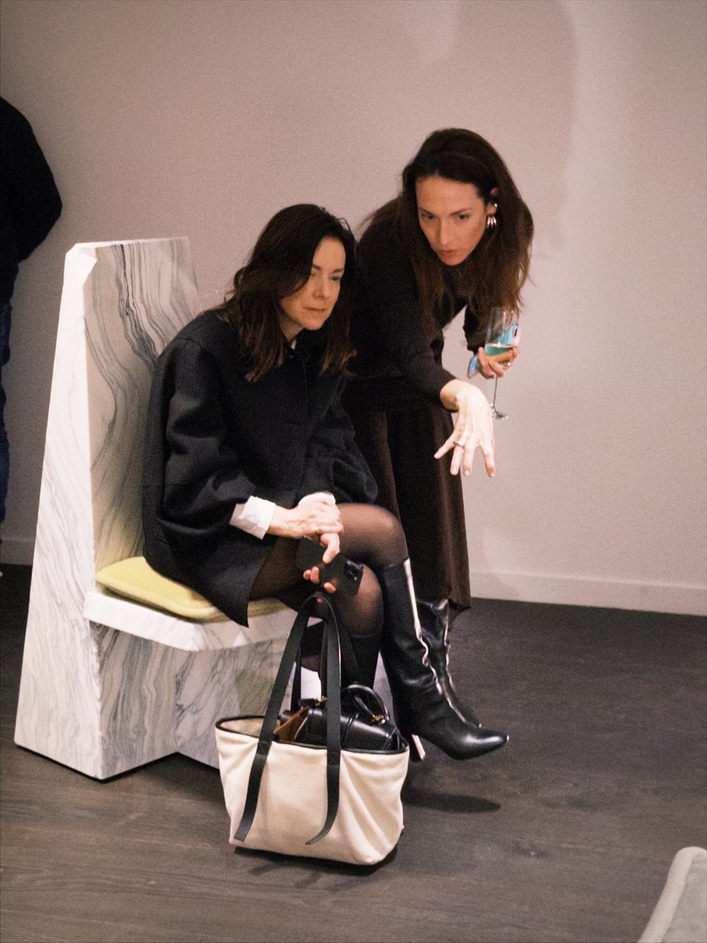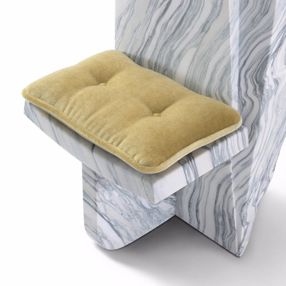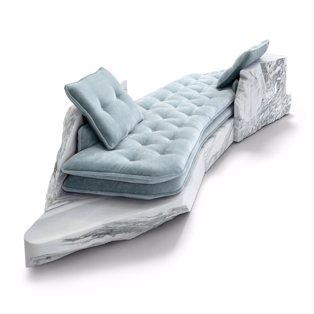 Intencją twórców było pozwolenie marmurowi „przemówić” w jego fragmentarycznym stanie, poprzez odwołanie do idei non-finito w rzeźbiarskim sensie tego pojęcia. Ekspresyjna, miejscami surowa i nieregularna faktura kamienia pozostaje w wyraźnym kontraście z miękkością mohairowego weluru Dedar, którym obite są siedziska. Bloki marmuru zachowują pamięć miejsca i konkretnego kontekstu architektonicznego, stanowiąc jednocześnie ostatnie istniejące fragmenty tej jakości materiału.