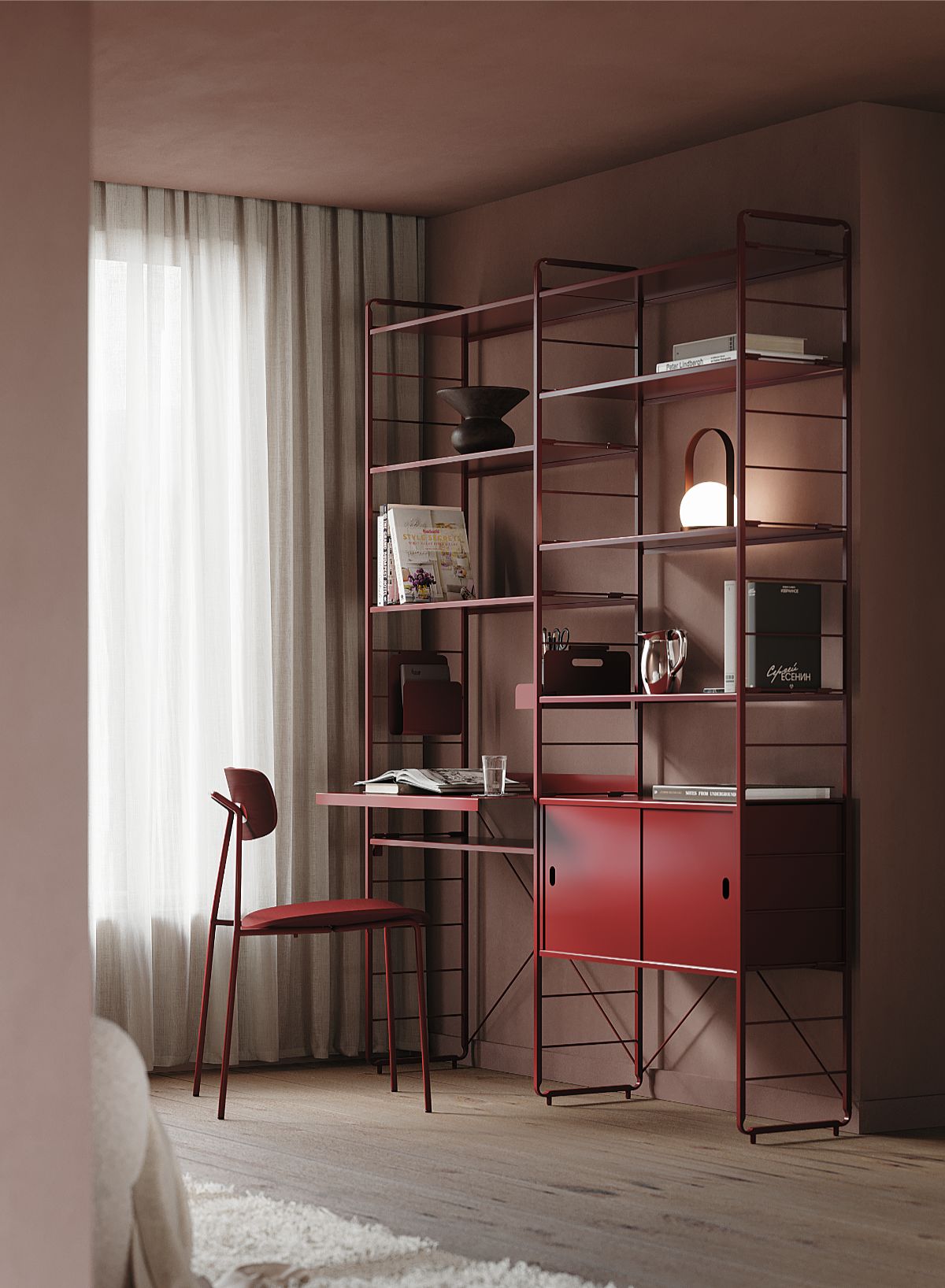 Największą premierą ekspozycji okazał się SSS (Steel Shelving System) – modułowy system regałów zaprojektowany przez Jiříego Pelcla. Jego konstrukcja opierała się na precyzyjnie tłoczonych i giętych profilach stalowych 15 × 15 mm, które umożliwiały niemal nieograniczone konfiguracje: od wysokich biblioteczek z biurkiem po niskie, długie komody. Otwarty i zamknięty moduł można było dowolnie zestawiać i rozbudowywać o akcesoria – haczyki, uchwyty na magazyny czy pojemniki na drobiazgi. SSS wyróżniał się elastycznością, solidnością i szeroką paletą kolorów, dzięki czemu dopasowywał się do każdego wnętrza, zachowując przy tym indywidualny charakter.